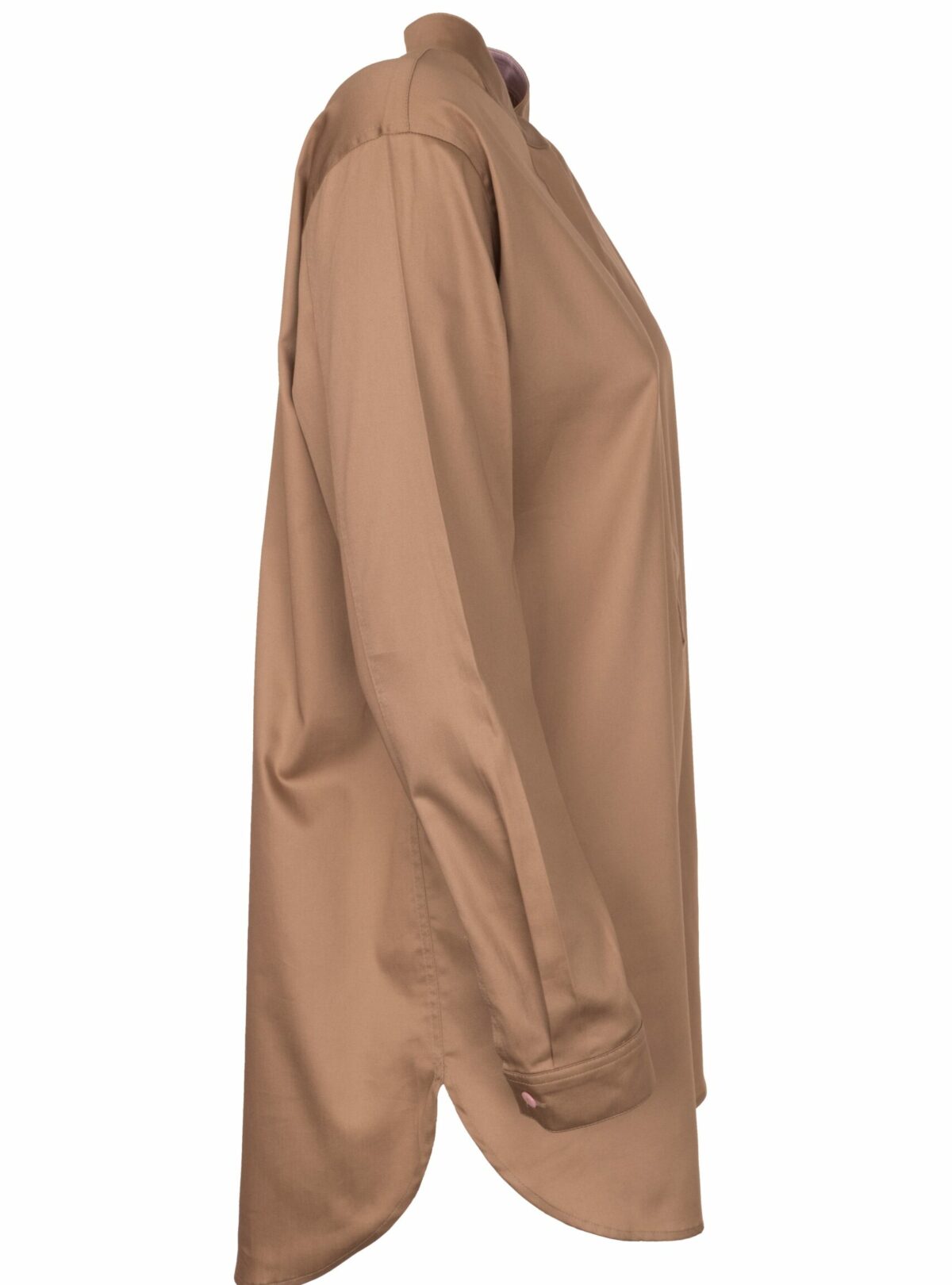 Diese A-Förmige Stretchbluse mit dekorativem Stehkragen für Damen wurde exklusiv für La Casa produziert, by MAX VOLMÁRY. Der super Blusenstretch sitzt fantastisch und ist in rosé und camel erhältlich!